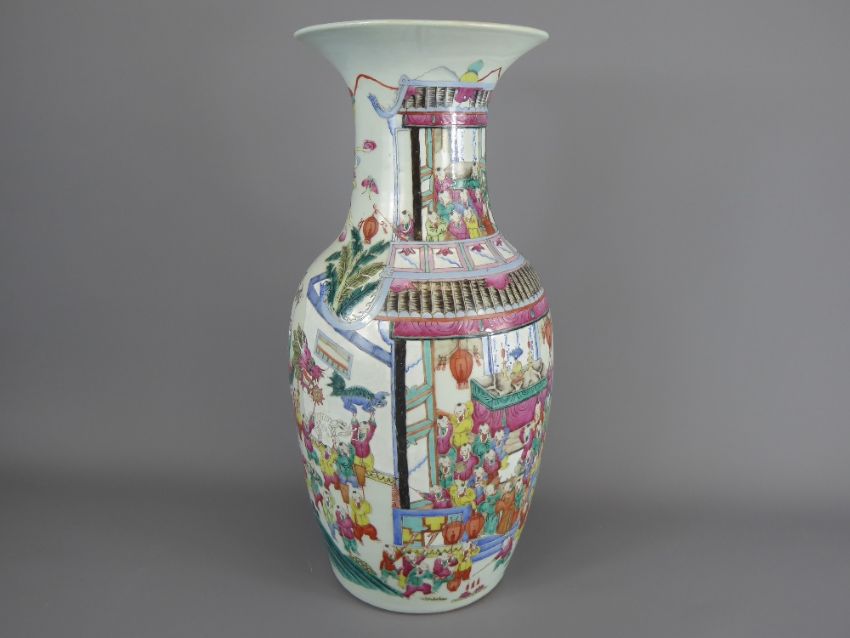 An Early 20th Century Chinese Famille Rose Vase, hand painted with scenes of The Chinese New Year Festival, approx 45 cms