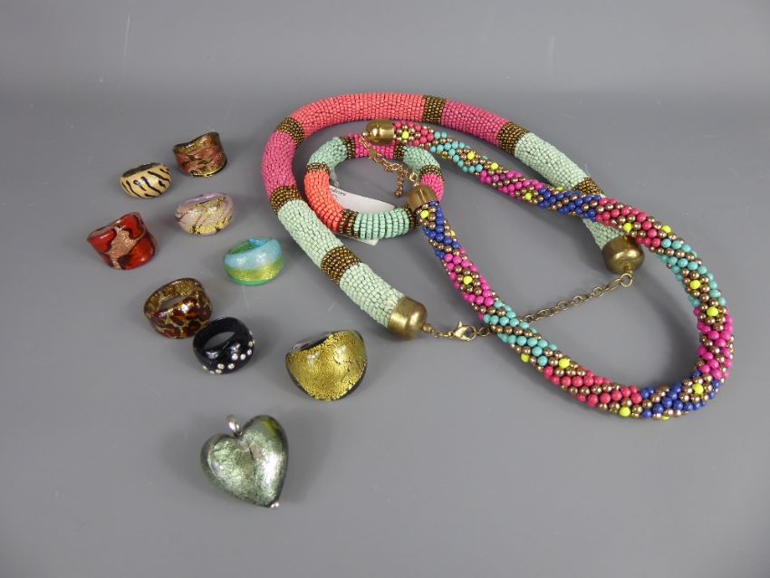 A Quantity of Miscellaneous Beaded Costume Jewellery, including necklaces, bracelets, glass rings, earrings and bangles.