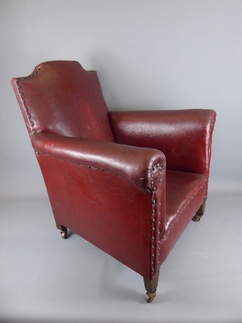 A Vintage Child's Leatherette Arm Chair with studding to elbow rests, approx 62 cms.