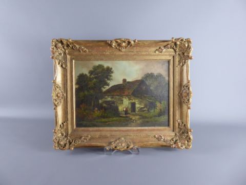 A Victorian Oil on Canvas, entitled 'Stourbridge Cottage', presented in a gilt wood frame, approx 34 x 25 cms.