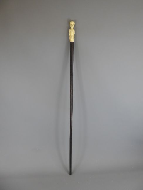 An Antique Rosewood & Carved Kongo Ivory Handled Cane, the cane carved in the form of an European woman with braided hair.