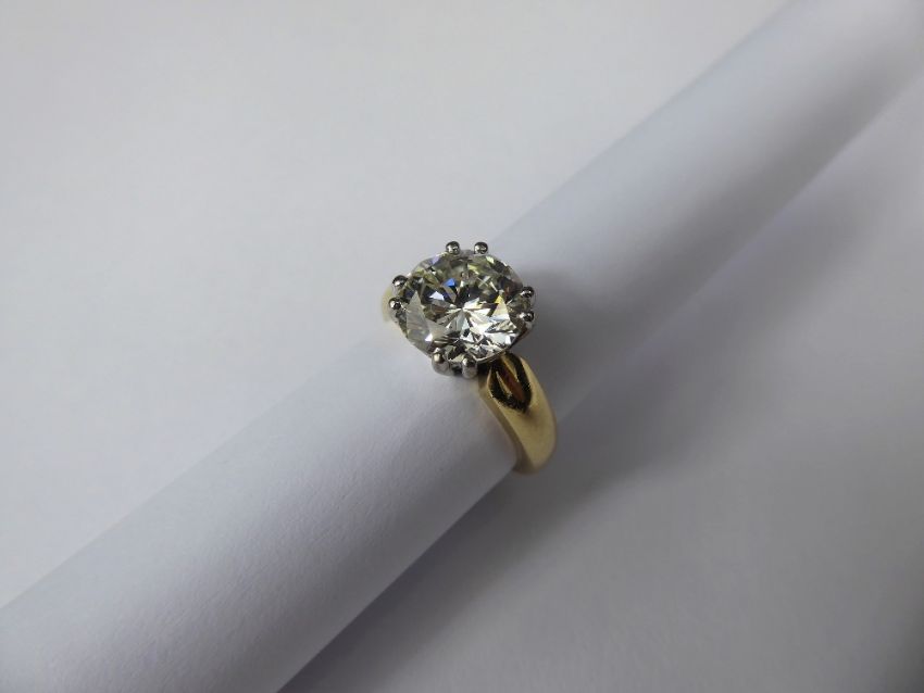 An 18ct Yellow Gold 3.02 ct Diamond Solitaire Ring, approx 7.9 gms, the diamond with a GCS Certificate dated 18/01/18 stating colour L, clarity Si2, Size L+, mm DOM.