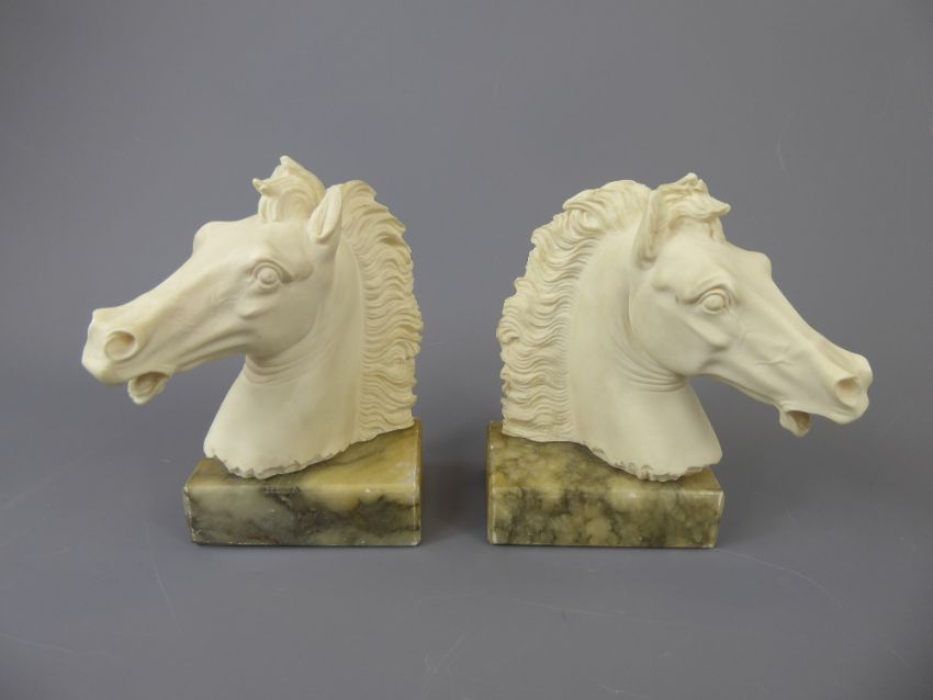 A Pair of Ceramic Italian Horse-head Book Ends on marble bases, approx 16 cms high.