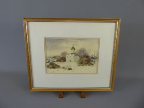 Oleg Nureyev, Russian, Watercolour on Paper entitled 'Church in Pereslavl-Zalesk', framed and glazed, approx 24 x 16 cms.