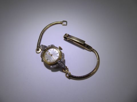 The watch having champagne dial with baton numerals, movement nr 469182, the face approx 15 mm, bracelet and watch 15 cms, approx 12.4 excluding movement, mm B.E.L.