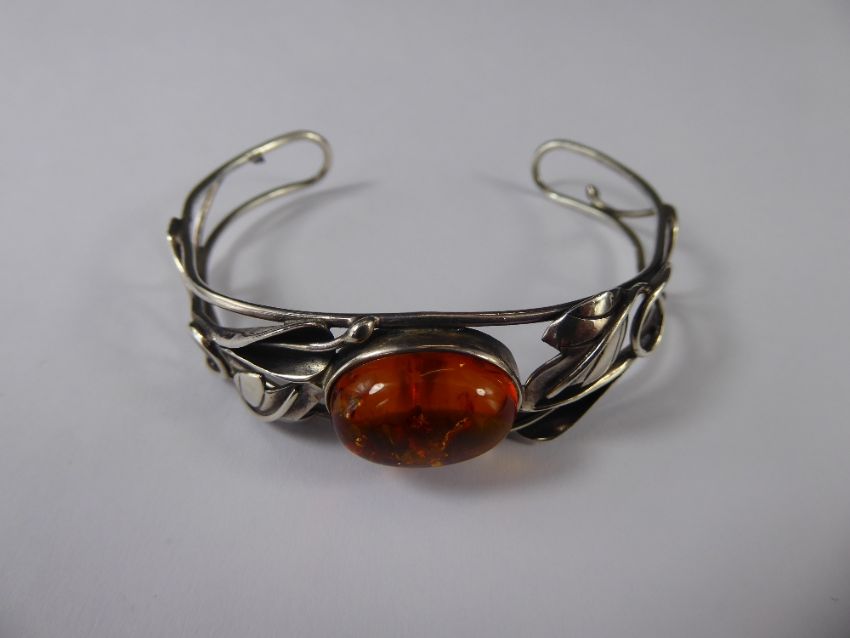 A Silver and Amber Bracelet, of foliate design, approx 13.7 gms.