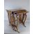 A Mahogany Three Piece Nest of Tables with joining stretcher and 'Lyre' decoration to sides.