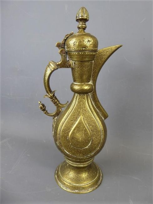 A 19th Century Islamic Brass Ewer, Bokhara (Uzbekistan), of typical form, approx 35 cms.