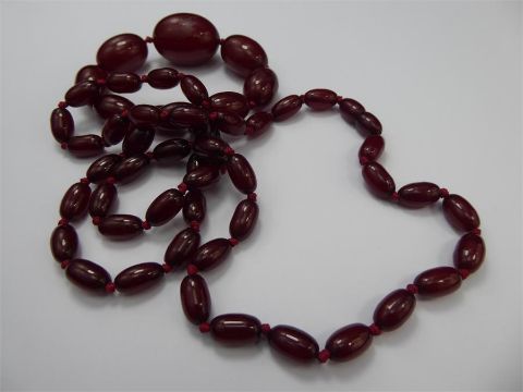 A Set of Graduated Amber-Style Beads on knotted silk, approx 99 cms in length, with beads varying in size from 13 mm - 30 mm.