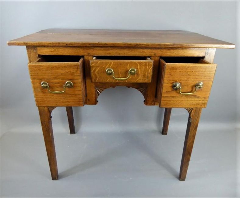 An Edwardian Oak Dressing Table, with three drawers and panelled top, approx 88 x 50 x 77 cms.