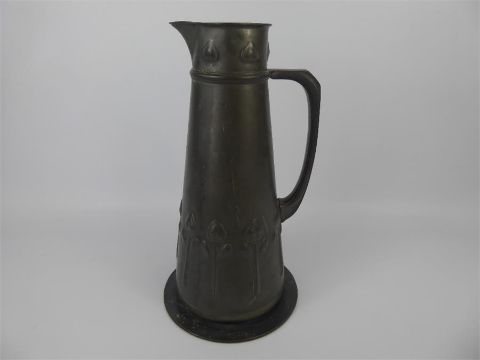 An Art Nouveau Liberty & Co Tudric Pitcher, Archibald Knox in style, with tulip design to base and top, approx 35 cms h.