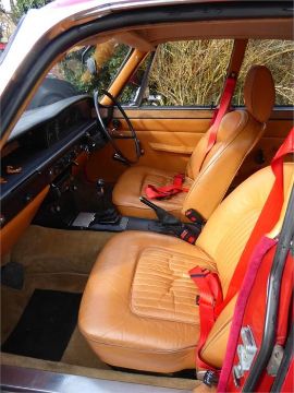 A Classic Rover P6 2200 TC 1975 in Monza Red, with mango leather interior. This car has been enthusiast-owned and was subject to a major drive-train overhaul, including re-built gear box, differential and new breaks, recently fitted bespoke long-life 304 grade stainless steel exhaust system and also undergone a comprehensive wax-oiling.  The car is correctly historic registered, is road-tax free and has a file with historic MOT certificates, Log Books and Invoices.  A true classic and an excellent investment for the future.