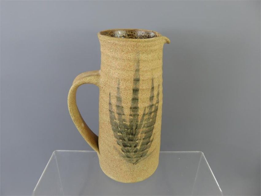 Haverfordwest Pottery Stoneware Jug, with olive green foliate decoration, approx 22 cms, stamped HP (early mark).