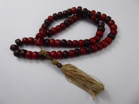 Beaded Red and Dark Brown Prayer Beads, on silk tassel, approx 60 cms, approx 60  gms.