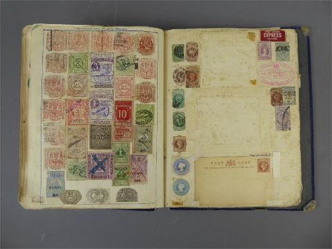 An Old Time Collection of GB Covers and Stamps. An old time collection in an album with 1890 postage Jubilee cards (2), Geo VI and early QEII first day covers, slogans, fiscals etc.