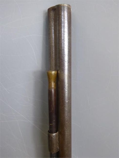 An 19th Century Continental 20 Bore Shotgun, fine Damascus barrels with gravitating stops, the stock carved with a male 'green man' mask, decorative scroll-work to the hammers, approx 120 cms.
