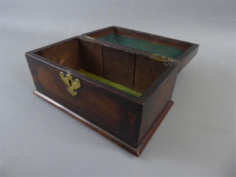 A Georgian Mahogany and Oak Tea Caddy, approx 23.5 x 14 x 13 cms, with a brass lock plate and handle.