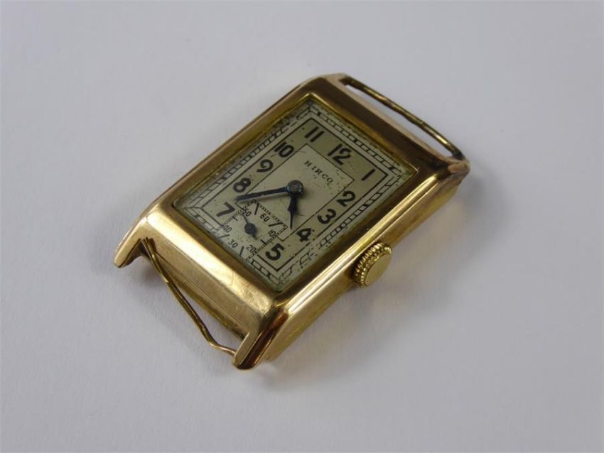 A Gentleman's Vintage 9ct Yellow Gold Tank-Style Wrist Watch, the watch having a silvered numeric dial, with minute hand, 15 jewel Swiss movement, Chester hallmarked case, stamped Stolkase, approx 38 x 23 mm, approx 6.8 gms (without movement). (Minor wear to the face and working)