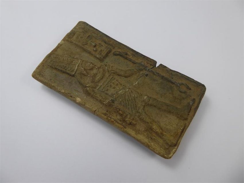 Egyptian Artefact Stone Amulet, depicting a pharaoh, with cartouche in relief to upper right corner, approx 6 x 11.5 cms, together with miscellaneous beads, scarabs and Egyptian glass.  Collection of a 19th Century Missionary and Amateur Archaeologist in the regions of Egypt, Israel and Palestine, in the family through descent.