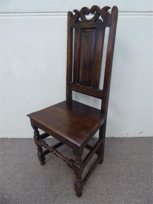 An Oak Hall Chair. The chair having turned front support, plain side and back stretchers, solid seat and back panel,