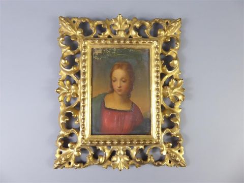 After Raffaello 'La Madonna del Cardellina'  Victorian study, presented in an ornate gilt-wood frame.