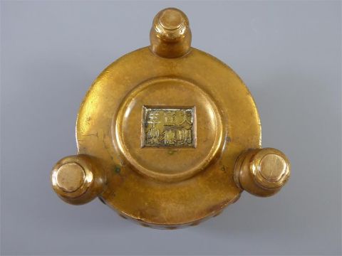 Antique Chinese Bronze Censer, with rivet decoration, approx 9 cms.