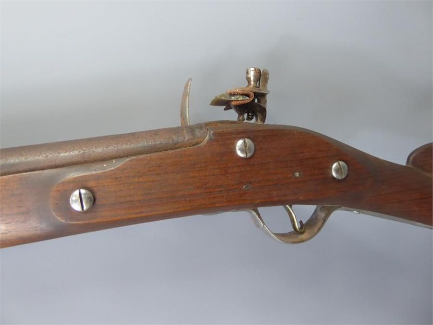 An English Civil War Reproduction Dog Lock Musket, barrel length approx 116 cms. Provenance: The owner of this collection excavated Hailes Abbey in Winchcombe over many seasons, and during his years with English Heritage, was largely responsible for developing the collection of historic artillery now on display at Pendennis Castle in Cornwall.