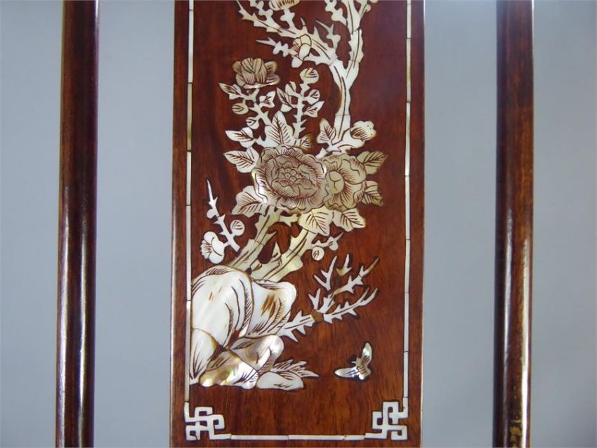 A Chinese Hardwood Rocking Chair, with Mother of Pearl inlay, approx 111 cms high.