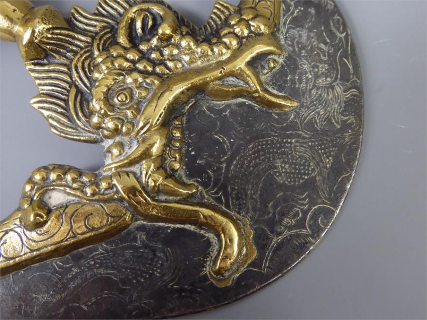 A 19th Century Tibetan Ritual Kartika, both blade and handle engraved also with a dragon, approx 17 x 17 cms.