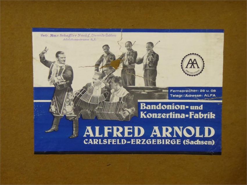 A Max Scheffler Concertina, in original carrying case containing three music books.