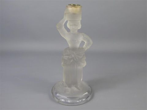 Rene Lalique Glass Figural Oil Lamp Base, approx 25 cms, inscribed R. Lalique to base.