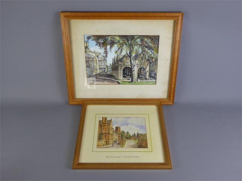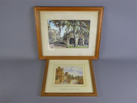 Three Watercolours of Chipping Campden entitled 'The Row', The Wool Market' and 'The Alms Houses', two signed B. Turner dated 1981, framed and glazed together with a print depicting a pastoral scene. (4)