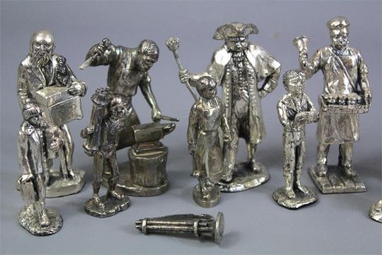A Collection of Chrome-Effect Figures. This lot includes "The Baker", "The Blacksmith", "The Wood Cutter" and "The Musical Box Man", amongst others, approx 20.