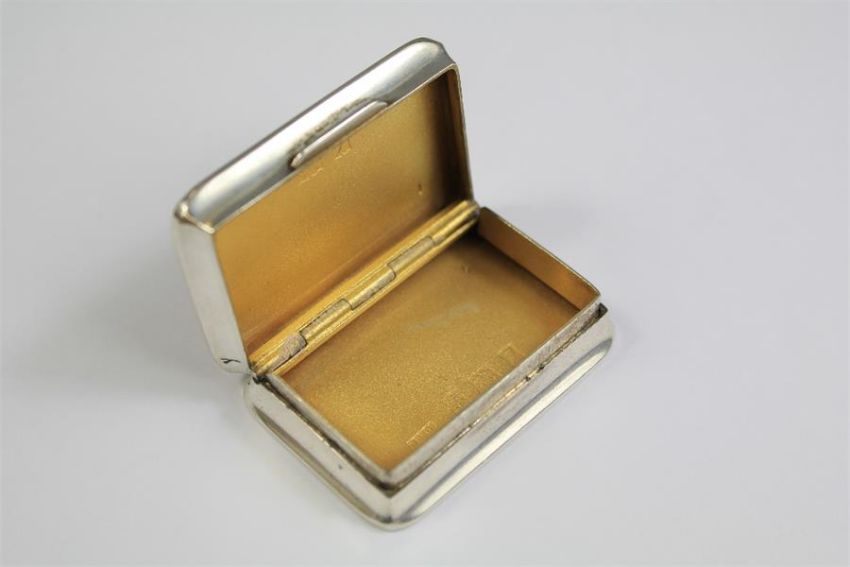 A Silver Snuff Box. The snuff box with a engine-turned cover with blank cartouche, Birmingham hallmark, dated 1958, mm Dingley Bros, approx 50 x 32 mm, approx 38.3 gms