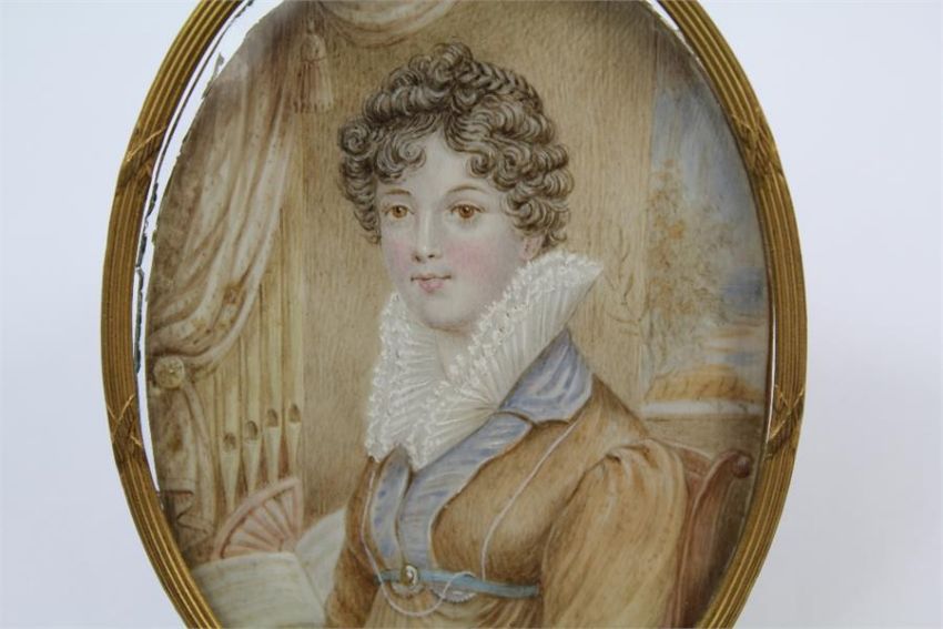 An Antique Portrait Miniature. The oval miniature on ivory, inscribed to verso Miss Carew as painted by Sir John Hayter, approx 70 x 100 mm. Provenance: Please refer to the previous lot regarding Henry Chapman Pincher (1914-2014).