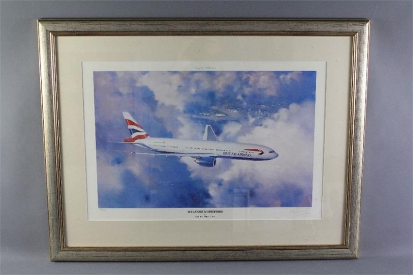 Anthony Cowland Limited Edition Prints. The prints entitled ' A Small World nr 205/500 signed in pencil lower right, 'Millinium Speedbird' nr 150/500 signed in pencil lower right and a John Young 'Speedbird Homeward Bound' nr 571/850 all three framed and glazed, approx 60 x 40 cms. (3)
