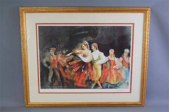 A Limited Edition Print. The print entitled 'Coppelia Mazurka', no 89 of 350, framed and glazed, approx 46 x 62 cms.