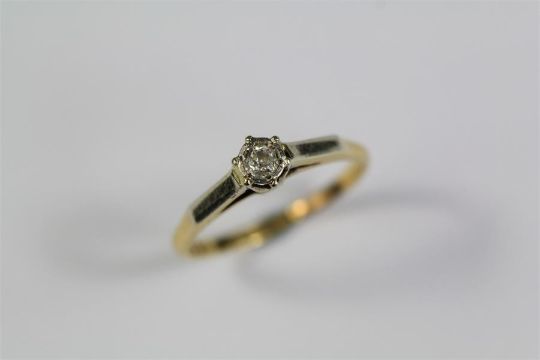 An Antique 18ct Yellow Gold and Platinum Solitaire Diamond Ring. The diamond approx   dias, ring size K+, approx 2 gms.