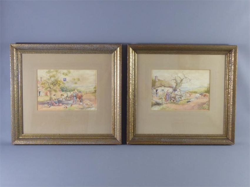 A D Bell (Wilfred Knox) 1884-1966. A pair of watercolours, entitled 'End of Day' and a 'Worcestershire Lane', both paintings heightened with white, signed and dated lower right, framed and glazed and another watercolour heightened with white, depicting a pastoral scene, signed and dated lower right, framed and glazed. (3)