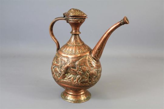 A 19th Century Indian Copper Ewer. The ewer depicting various mythological scenes, approx 28 cms.