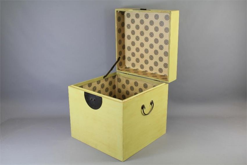 A Vintage-Style Pale Green Chinese Lidded Storage Box. The box having handles to sides, approx 45 x 45 x 45 cms.