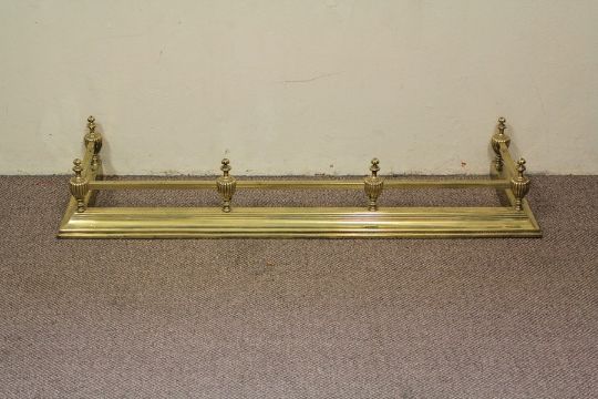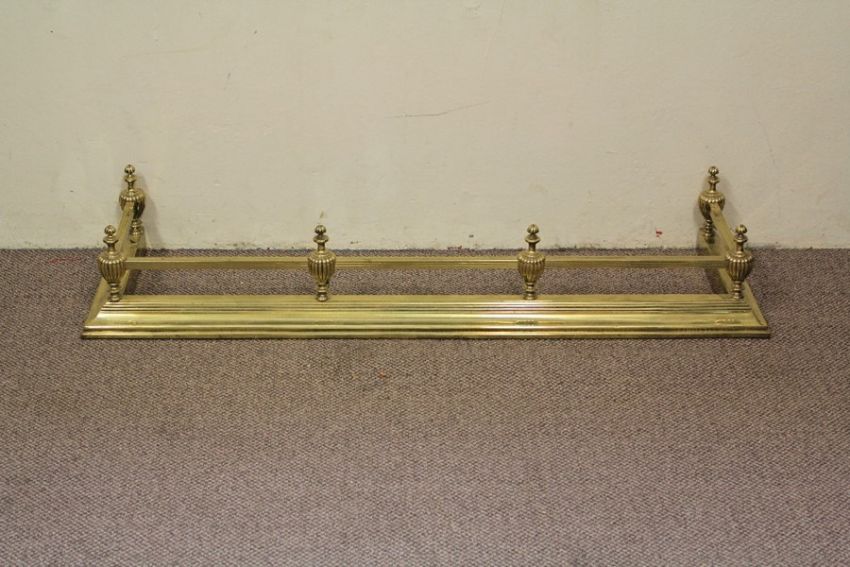 A Brass Fire Fender. The fire fender having six urn finials connected by ribbed tubular rails, approx 140 x 40 cms.