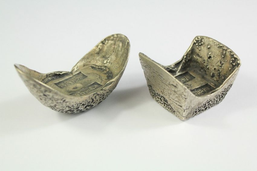 Two Chinese White Metal Trade Tokens. The tokens with impressed character marks to top.
