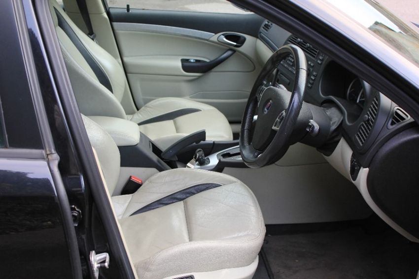 A 2006 Black Saab Diesel Model 9-3 Vector-Sport Automatic Estate. This vehicle comes with a full Saab service history, black and magnolia leather interior, automatic, paddle shift, xenon lights, climate control, cruise control, rear parking aid, alarm, alloy wheels (currently on winter tyres with a spare set of silver alloys, electric windows, radio/cd, roof rack approx 144 000 miles. In very good overall condition, drives exceptionally well. (no guarantees given or implied)