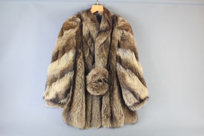 A Ladies Vintage Raccoon Short Jacket. This lot includes a pair of matching ear muffs, approx size 10.