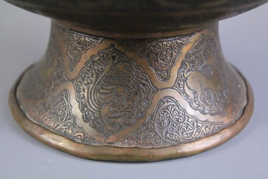 A 17th Century Islamic Safavid Kettle Ewer. The ewer profusely engraved with animals and birds around the body between two bands of Arabic script; with dragon spout, approx 37 cms.