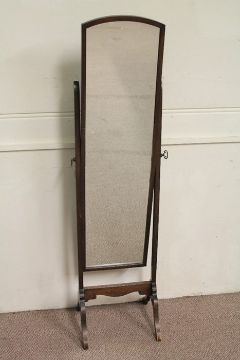 An Edwardian-Style Cheval Mirror. The cheval mirror supported on swept feet, approx 38 x 153 cms.