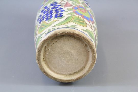 An Antique Persian Pottery Vase. The vase hand-painted with birds, flowers and variegated leaves, approx 33 cms. (some light crazing evident)Note: Property of a Lady formerly from Isfahan Iran.