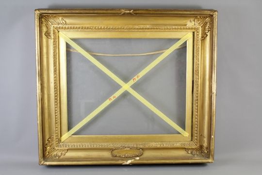 A 19th Century Gilt Wood Picture Frame. The frame dated 1830, possibly original glass.