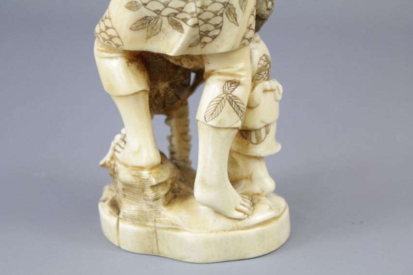 A Circa 1900 Japanese Ivory Okimono. The carving depicting a father with his children, approx 19 cms.